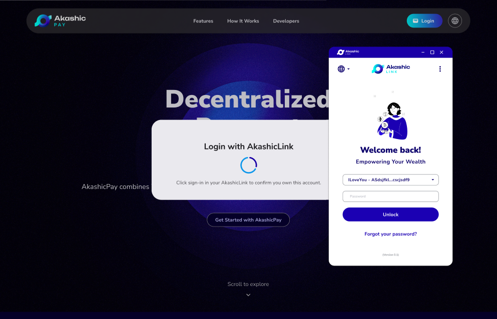 2. As mentioned earlier, an AkashicLink account is required to use the services of AkashicPay. On this modal, you'll see two options: