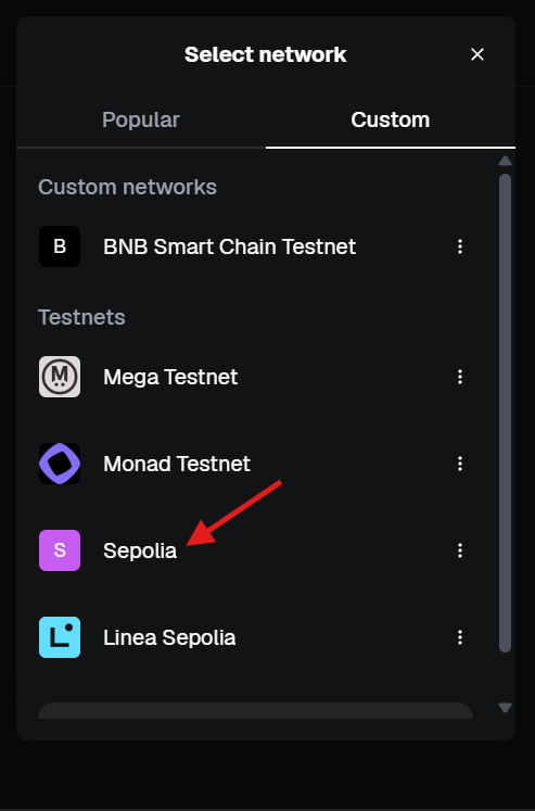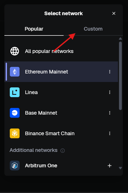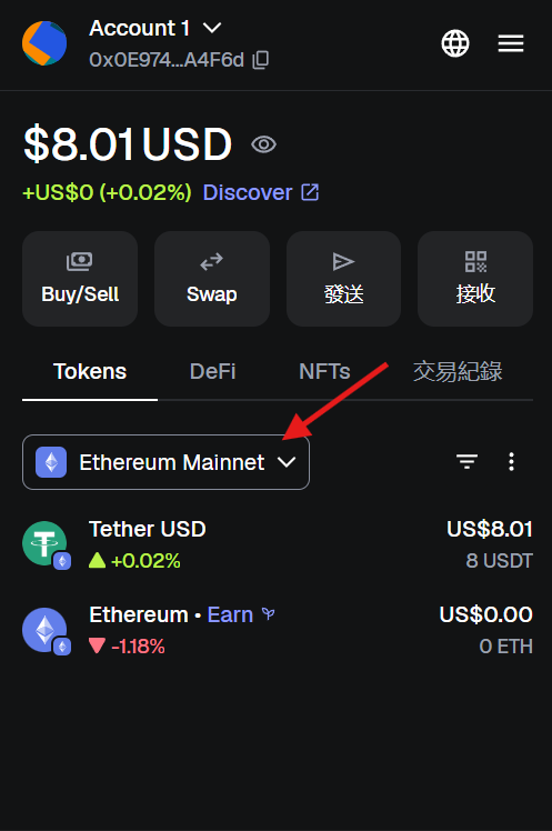 開啟您的 MetaMask,並在子群組「代幣」下方選擇下拉選單 ->